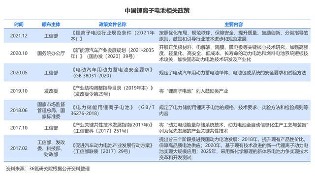 鋰離子電池具有高能量、長(zhǎng)壽命、高性價(jià)比、少污染等優(yōu)點(diǎn),廣泛應(yīng)用于新能源汽車(chē)、消費(fèi)電子、儲(chǔ)能電站等領(lǐng)域。近年來(lái),國(guó)務(wù)院、工信部、發(fā)改委等陸續(xù)出臺(tái)技術(shù)指南、發(fā)展行動(dòng)方案等政策文件,推動(dòng)鋰離子電池及其下游應(yīng)用創(chuàng)新發(fā)展。2021年12月,工信部正式發(fā)布《鋰離子電池行業(yè)規(guī)范條件(2021年本)》,對(duì)不同類(lèi)型鋰離子電池的能量密度作出要求,進(jìn)一步引導(dǎo)鋰離子電池行業(yè)技術(shù)進(jìn)步與規(guī)范發(fā)展。
