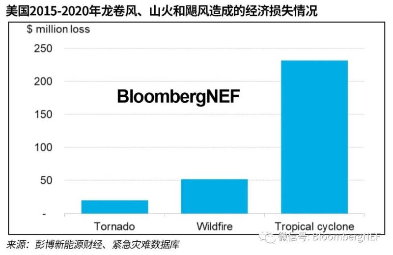 雖然龍卷風(fēng)可能導(dǎo)致停電,但美國公用事業(yè)公司估計(jì)更擔(dān)心颶風(fēng)和山火。根據(jù)緊急災(zāi)難數(shù)據(jù)庫(EM-DAT)數(shù)據(jù),從2015年到2020年,美國共遭遇20起颶風(fēng)和13起山火災(zāi)害,對其造成了2.84億美元的經(jīng)濟(jì)損失,而龍卷風(fēng)僅造成2,000萬美元的損失。彭博新能源財(cái)經(jīng)最近的研究估計(jì),美國共有70萬千米的電網(wǎng)位于受颶風(fēng)和山火災(zāi)害嚴(yán)重威脅的州。