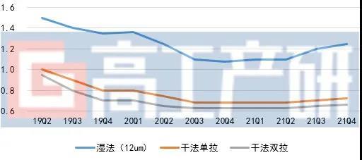 2019-2021Q4鋰電基膜隔膜價(jià)格走勢(shì)(元/㎡)