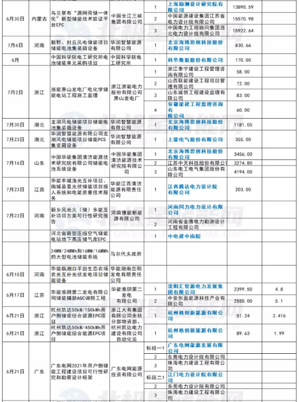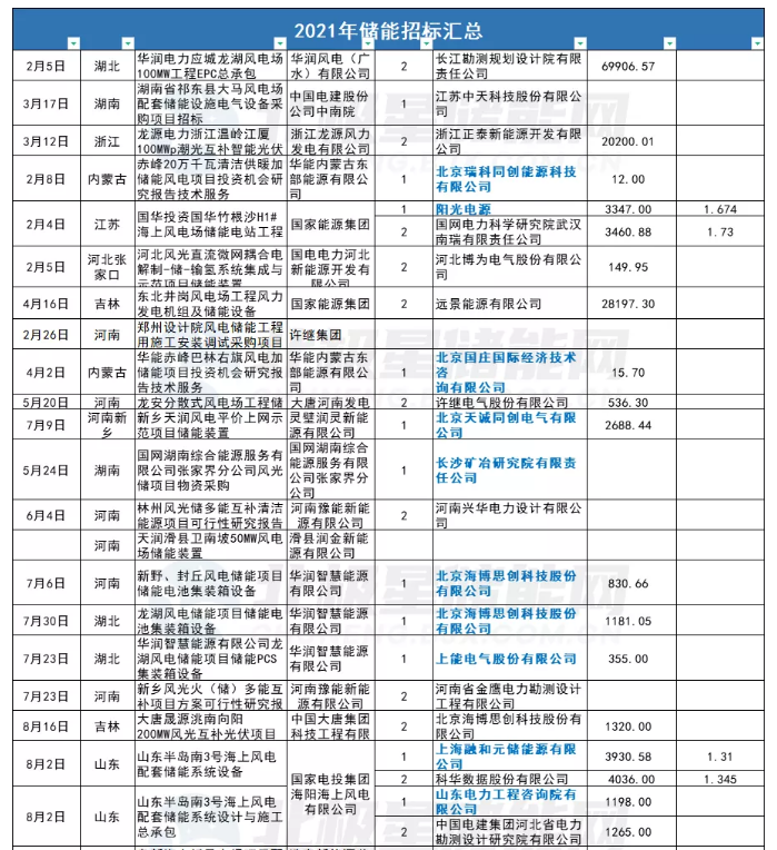 在各地新能源項目開發(fā)方案中都提出配置儲能要求的支撐下,儲能市場需求正極速擴張。國家電網(wǎng)、南方電網(wǎng)、國家電投、華能、華電、華潤、三峽集團等等眾多央企國企陸續(xù)發(fā)布儲能項目設(shè)備或儲能研究招標(biāo)。