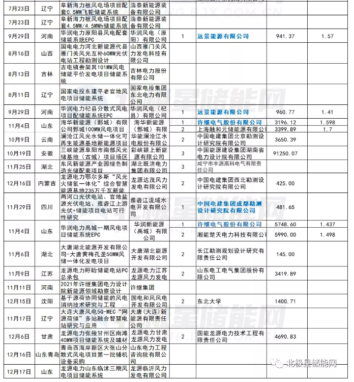 北極星儲能網(wǎng)不完全統(tǒng)計,截止2021年12月31日,風(fēng)光配套儲能項目中遠(yuǎn)景能源中標(biāo)最多,共中標(biāo)7個項目,總規(guī)模超435.8MW/695.6MWh。