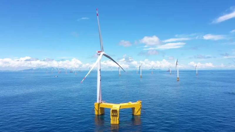 全球首臺抗臺風型漂浮式海上風電機組在廣東陽江順利完成安裝。