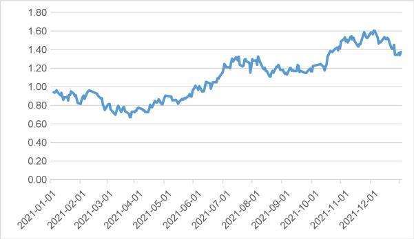 圖:2021年寧德時代總市值走勢圖(萬億元)