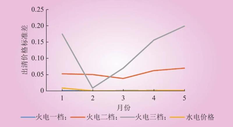 西北電網(wǎng)2019年上半年市場(chǎng)出清價(jià)格標(biāo)準(zhǔn)差如圖4所示。
