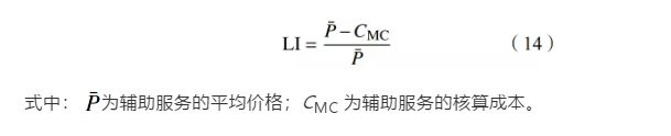 價(jià)格是反映市場(chǎng)勢(shì)力的一個(gè)重要指標(biāo),但在不同市場(chǎng)中,甚至是同一市場(chǎng)的不同時(shí)段,價(jià)格都會(huì)發(fā)生變化。一個(gè)較好的方法是將電價(jià)與發(fā)電邊際成本相比較。如果價(jià)格明顯高于邊際成本,則說(shuō)明存在市場(chǎng)力。任何企業(yè)經(jīng)營(yíng)的目的都是利潤(rùn)最大化,企業(yè)應(yīng)獲取合理的利潤(rùn),因此價(jià)格可以比邊際運(yùn)行成本高。勒納指數(shù)反映價(jià)格與邊際成本的相對(duì)水平,根據(jù)輔助服務(wù)的市場(chǎng)交易價(jià)或者合同價(jià)和其生產(chǎn)成本,得到輔助服務(wù)市場(chǎng)的勒納指標(biāo)為