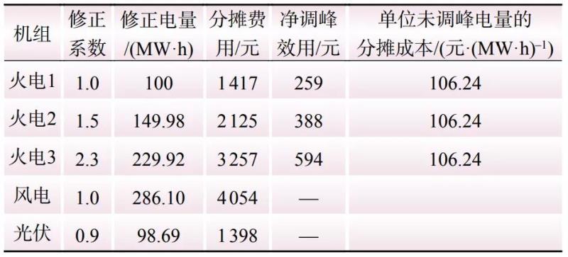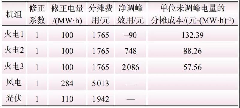 當(dāng)不考慮電量修正時(shí),即每個(gè)調(diào)峰費(fèi)用分?jǐn)傊黧w的修正系數(shù)均為1,按實(shí)際發(fā)電量分?jǐn)傉{(diào)峰費(fèi)用,則分?jǐn)偨Y(jié)果如表6所示。