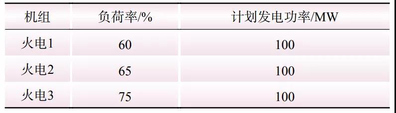 表2 機(jī)組日前計(jì)劃負(fù)荷率及發(fā)電功率