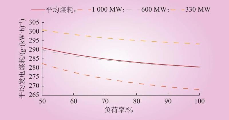 圖2 不同負(fù)荷率下火電機(jī)組的平均發(fā)電煤耗
