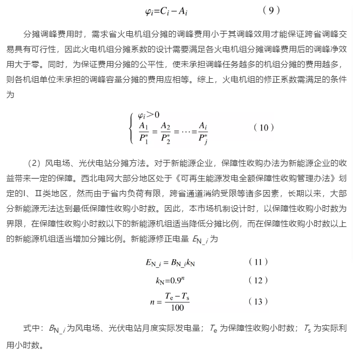 在進(jìn)行市場(chǎng)機(jī)制設(shè)計(jì)時(shí),一方面,要充分發(fā)揮稀缺資源的價(jià)值,必須從市場(chǎng)交易品種的設(shè)計(jì)以及參與方式出發(fā),為具備調(diào)峰能力的機(jī)組設(shè)計(jì)與之相適應(yīng)的市場(chǎng)品種以及市場(chǎng)參與方式,充分激勵(lì)機(jī)組參與調(diào)峰市場(chǎng);另一方面,從市場(chǎng)費(fèi)用分?jǐn)倎?lái)看,調(diào)峰需求省的省內(nèi)所有電源企業(yè)都有承擔(dān)電網(wǎng)調(diào)峰的義務(wù),即跨省調(diào)峰費(fèi)用應(yīng)該由省內(nèi)所有機(jī)組進(jìn)行分?jǐn)?,各類機(jī)組的分?jǐn)偡绞剑纫峡茖W(xué)、合理的原則,又要“以分?jǐn)偞傧{”,從分?jǐn)偨嵌乳g接激勵(lì)機(jī)組參與調(diào)峰。