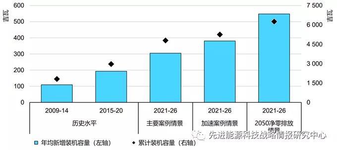 1、未來五年可再生能源發(fā)電裝機容量將快速增長,但按照這一增長趨勢仍無法實現(xiàn)2050年凈零排放目標