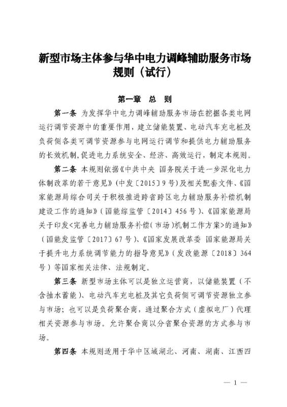 近年來,隨著雙碳目標提出和新型電力系統(tǒng)構(gòu)建,華中區(qū)域新能源發(fā)電裝機快速增長,系統(tǒng)調(diào)峰困難問題日益突出,新能源棄電形勢日趨嚴峻。華中能源監(jiān)管局高度重視,積極深化華中跨省調(diào)峰輔助服務市場建設(shè),經(jīng)過一年多醞釀謀劃,于2021年11月正式印發(fā)《新型市場主體參與華中電力調(diào)峰輔助服務市場規(guī)則(試行)》。該規(guī)則為儲能裝置、電動汽車充電樁及負荷側(cè)各類可調(diào)節(jié)資源參與省間調(diào)峰輔助服務交易建立了市場機制,使華中區(qū)域省間電力調(diào)峰輔助服務市場參與方由發(fā)電側(cè)延伸到需求側(cè)。新型市場主體通過改變自身充放電行為或用電行為,將高峰時段用電或充電騰挪到低谷、腰荷時段,從而為所在省的省級電網(wǎng)在低谷、腰荷時段吸納省外富余清潔能源提供一部分增量空間。規(guī)則的實施不僅有助于發(fā)揮需求側(cè)參與區(qū)域電網(wǎng)調(diào)節(jié)的能力、促進清潔能源消納,而且還為新型市場主體帶來一部分增量收益。
