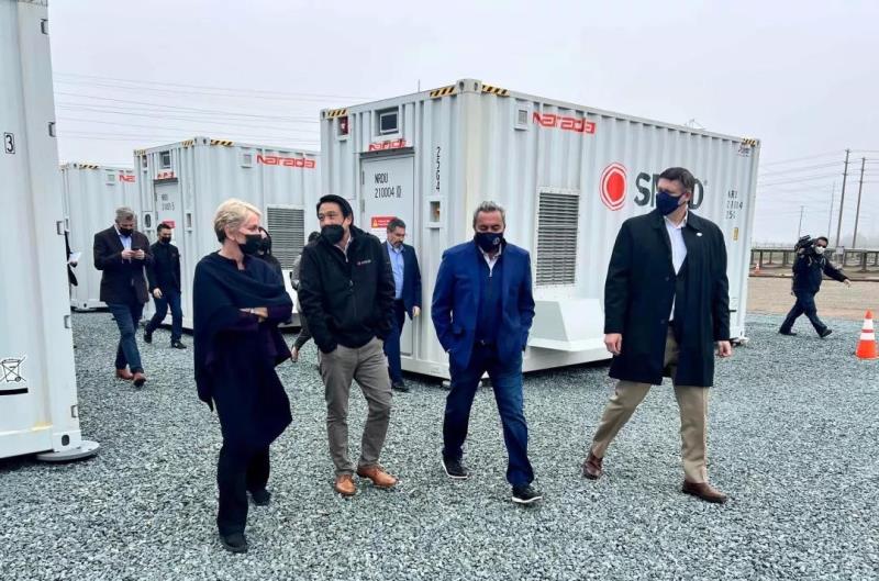 美國能源部長格蘭霍姆與國會議員貝拉等,參觀位于美國加州的南都光伏儲能項目