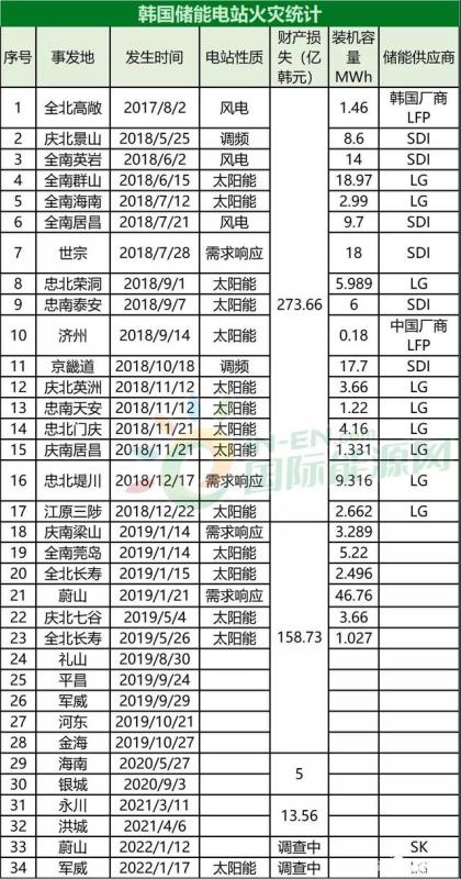 相關(guān)數(shù)據(jù)顯示,自2017年至今,韓國國內(nèi)已經(jīng)發(fā)生儲能系統(tǒng)火災(zāi)超34起,涉事電池企業(yè)包括LG新能源、三星SDI和其它電池企業(yè)。有多數(shù)事故裝置的是LG化學生產(chǎn)的鋰電池。