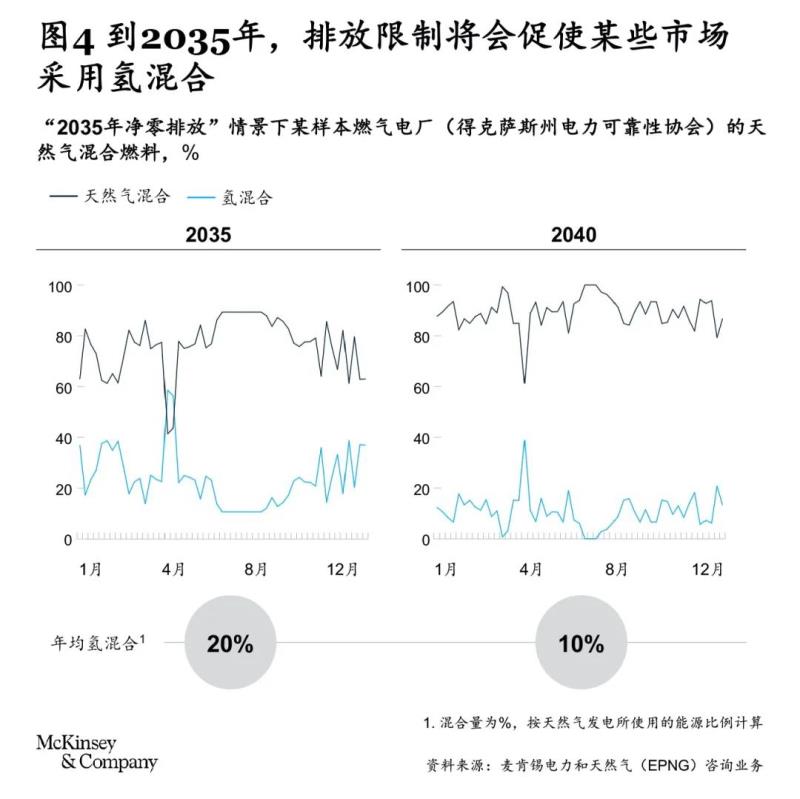 10. 打造一個(gè)全國(guó)性的氫能和碳捕集輸送網(wǎng)絡(luò)。部署新型氫燃料和碳捕集基礎(chǔ)設(shè)施十分關(guān)鍵 ——對(duì)于實(shí)現(xiàn)可調(diào)度的低碳發(fā)電如此,對(duì)于其它行業(yè)采用電氣化以外的低碳替代方案亦是如此,特別是在電氣化遭遇技術(shù)挑戰(zhàn)(如高溫工業(yè)用熱或清潔交通的燃料密度),或者天然氣作為工業(yè)過(guò)程中的一種原料可被替代(如水泥和肥料)的情況下?!?7】例如,美國(guó)低成本天然氣和地質(zhì)碳封存的出現(xiàn),意味著與世界其它大部分地區(qū)采用的綠色電解氫技術(shù)相比,低碳甲烷制氫或“藍(lán)氫”(通過(guò)蒸汽甲烷重整或自發(fā)性熱重整)的經(jīng)濟(jì)效益從短期來(lái)看可能更加有利。根據(jù)分析,直到2040年綠氫才將在以經(jīng)濟(jì)為主要驅(qū)動(dòng)的新建項(xiàng)目中“勝出”,并將繼續(xù)利用已有的管道網(wǎng)絡(luò),同時(shí)實(shí)現(xiàn)需求靈活性,以推動(dòng)更高水平的間歇性可再生能源發(fā)電(見(jiàn)圖4)。歐洲正積極討論建立廣泛的氫能網(wǎng)絡(luò),有力地支持了價(jià)值鏈各環(huán)節(jié)企業(yè)采取戰(zhàn)略行動(dòng)以擴(kuò)大投資?!?8】