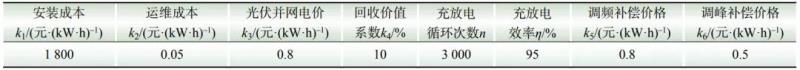 儲(chǔ)能電池成本和收益計(jì)算中所需參數(shù)如表3所示。