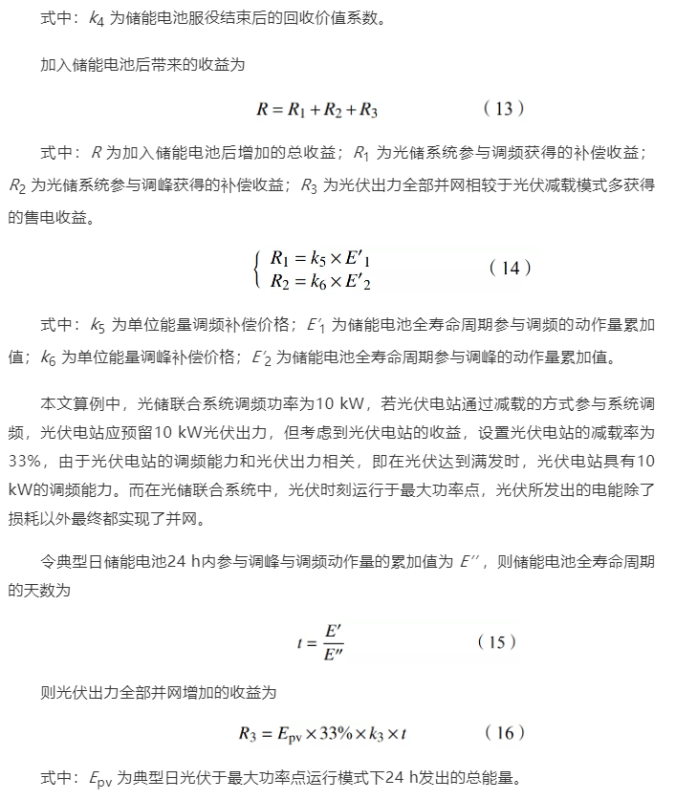 本文分析光伏電站加入儲(chǔ)能電池后在儲(chǔ)能電池全壽命周期內(nèi)光儲(chǔ)聯(lián)合系統(tǒng)參與電網(wǎng)調(diào)頻調(diào)峰的經(jīng)濟(jì)性。