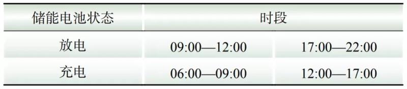 基于此,設(shè)置儲(chǔ)能電池工作在調(diào)峰模式下,充放電時(shí)段如表2所示。