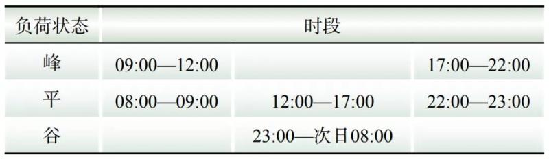 儲(chǔ)能電池運(yùn)行在調(diào)峰模式時(shí)需要根據(jù)調(diào)度中心的指令設(shè)置儲(chǔ)能電池的充放電時(shí)段,本文算例以某省的負(fù)荷峰平谷時(shí)段[20]來代表調(diào)度中心指令,如表1所示。