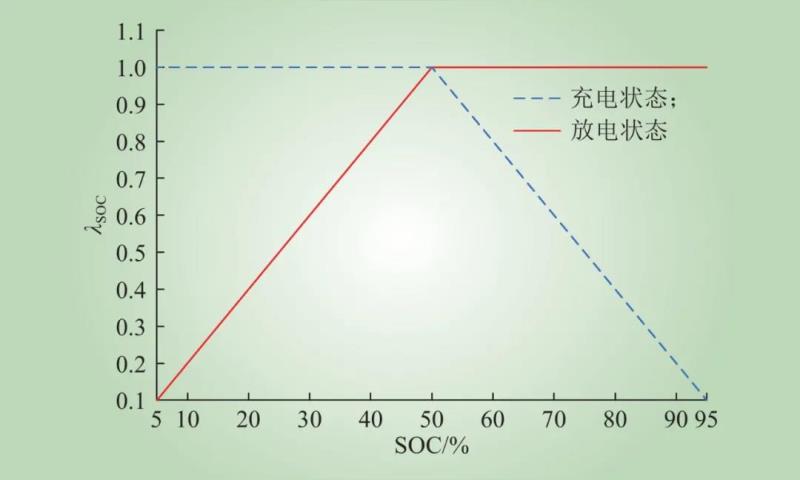 充放電狀態(tài)下, λSOC 如式(5)、式(6)和圖4所示。
