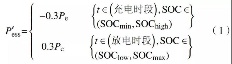 在調(diào)峰模式下,儲(chǔ)能電池充放電的時(shí)長在小時(shí)級,因此儲(chǔ)能電池可以根據(jù)自身容量大小,采取較小功率進(jìn)行充放電,以此來延長儲(chǔ)能電池的使用壽命。在實(shí)際工程中,未考慮荷電狀態(tài)約束時(shí),調(diào)峰模式下通常設(shè)置0.3倍儲(chǔ)能電池額定功率為初級參考功率進(jìn)行充放電。