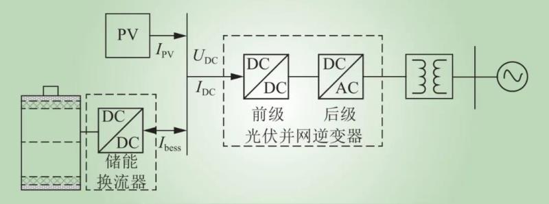 實(shí)際光伏電站中,光伏并網(wǎng)逆變器中的DC/DC Boost換流器使用了單向開關(guān)管,因此光伏并網(wǎng)逆變器只支持功率由光伏側(cè)向電網(wǎng)側(cè)單向流動(dòng)。在光儲(chǔ)系統(tǒng)中,儲(chǔ)能電池吸收的功率均來自光伏。
