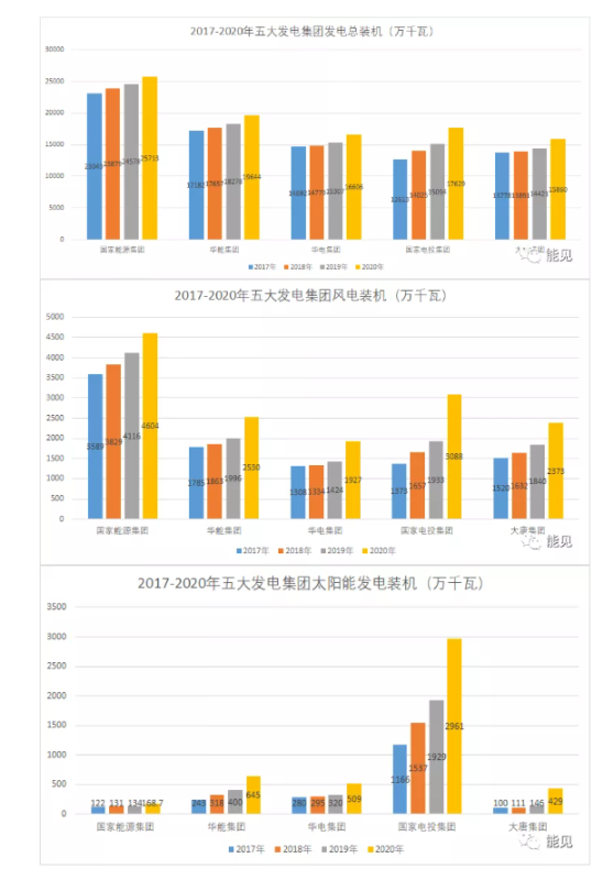 以下為2019-2020年五大發(fā)電集團(tuán)的裝機(jī)情況。