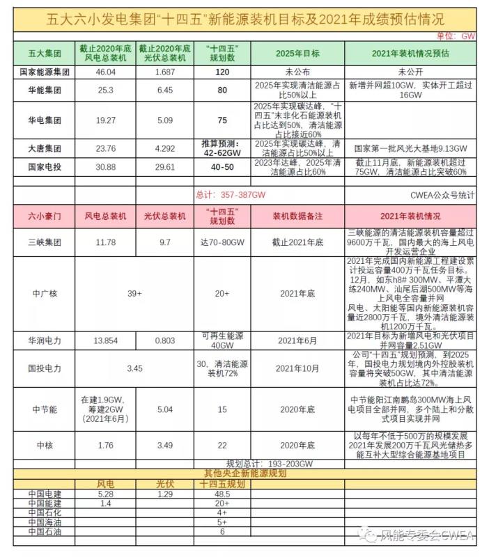 “五大六小” 十四五新能源裝機(jī)規(guī)劃