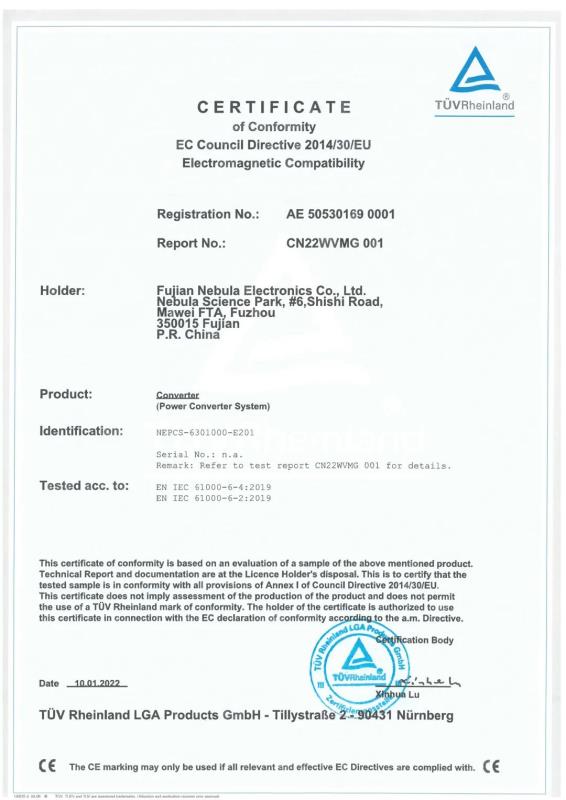 儲能變流器PCS630 已獲得CE認證證書