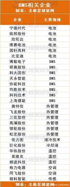 北極星不完全統(tǒng)計,涉及電池管理系統(tǒng)BMS相關(guān)企業(yè)如下: