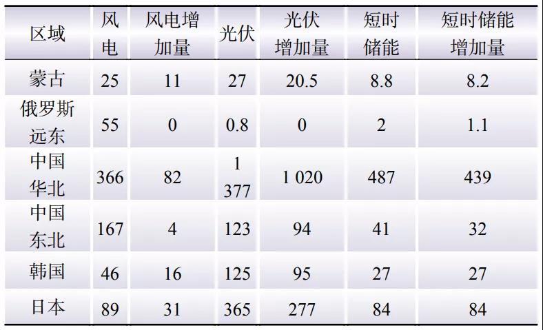 (2)在情景0優(yōu)化結(jié)果的基礎(chǔ)上,增加風(fēng)資源較好區(qū)域風(fēng)電的裝機(jī)容量,作為新的邊界條件,重新優(yōu)化東北亞6區(qū)域的新能源、電網(wǎng)和儲(chǔ)能容量,論述新能源裝機(jī)布局和容量規(guī)劃問題,形成情景1。