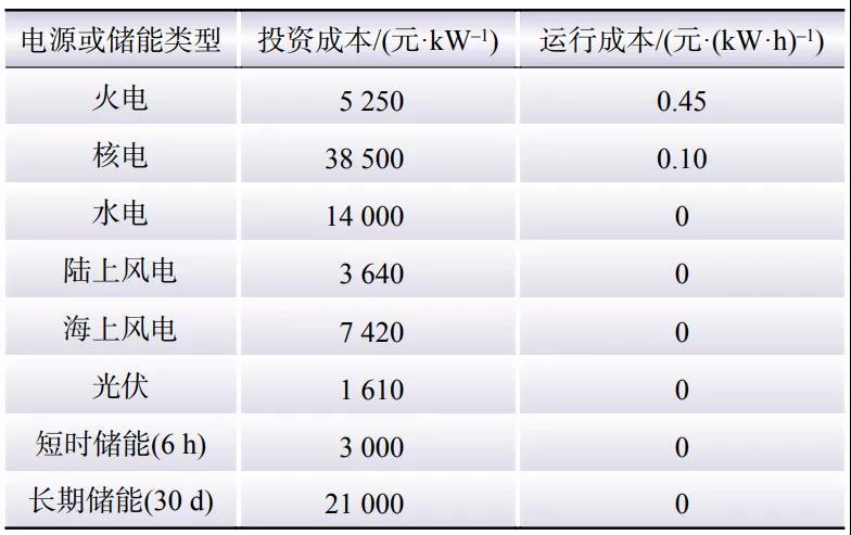 表3 2050年不同類型電源和儲(chǔ)能成本