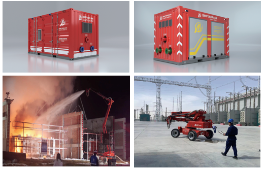 儲能電站廣場突發(fā)火情防控方案,采用壓縮空氣泡沫滅火系統(tǒng),配合高機(jī)動舉高消防滅火機(jī)器人作為滅火作戰(zhàn)主要設(shè)備,可根據(jù)火源點(diǎn)不同,遙控高機(jī)動舉高消防滅火機(jī)器人,快速移動到火災(zāi)現(xiàn)場,進(jìn)行針對性滅火。