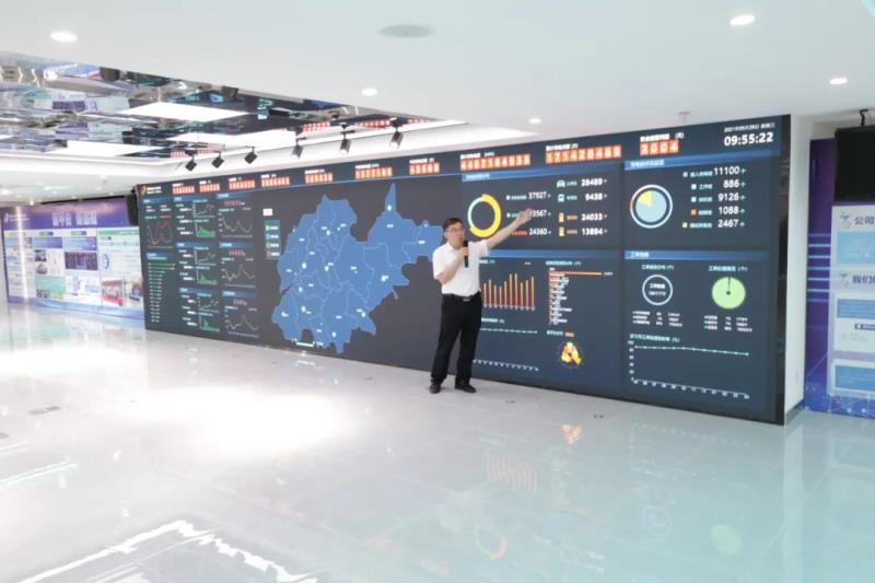 2021年5月26日,國網(wǎng)(山東)電動汽車服務有限公司平臺部工作人員正在向參觀者講解智慧車聯(lián)網(wǎng)平臺。