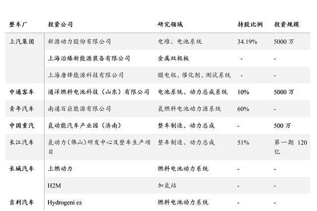 圖表四:車企以及對應(yīng)的氫能源投資公司