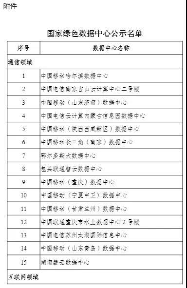 國(guó)家綠色數(shù)據(jù)中心名單公示