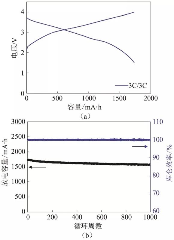 (7)3 C/3 C、100% DOD循環(huán)1000次后容量保持率91%,循環(huán)性能優(yōu)異;