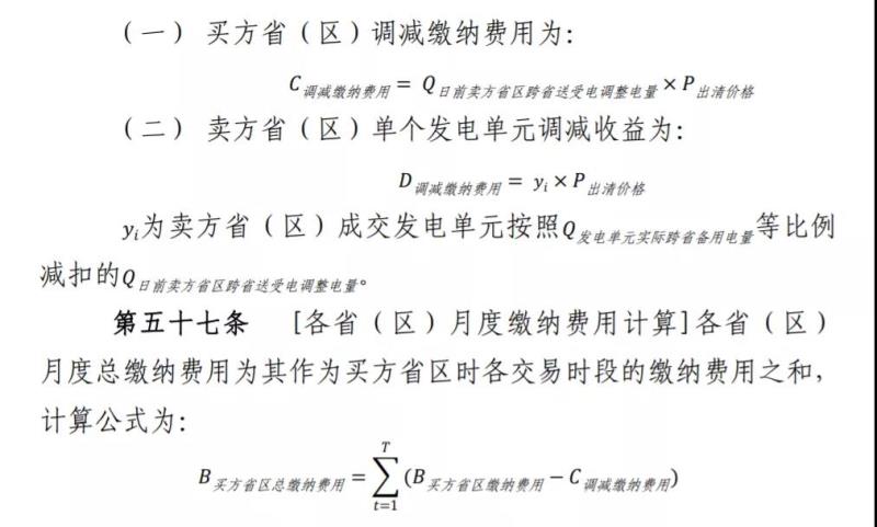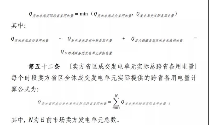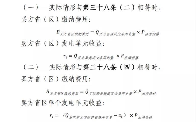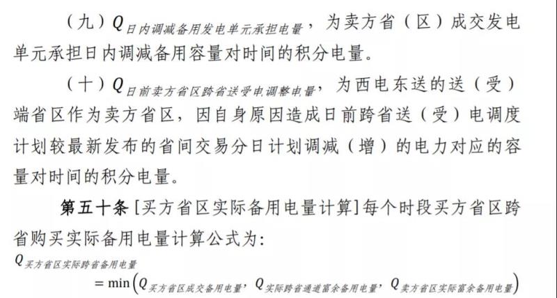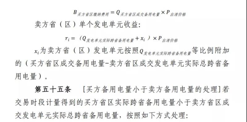 第五十三條 [買賣雙方備用電量平衡的處理]若交易時(shí)段計(jì)量得到的買方?。▍^(qū))實(shí)際跨省備用電量等于賣方省(區(qū))成交發(fā)電單元實(shí)際總跨省備用電量,買方省(區(qū))按照成交備用容量和市場(chǎng)出清價(jià)格向賣方?。▍^(qū))成交發(fā)電單元支付備用容量購(gòu)買費(fèi)用。