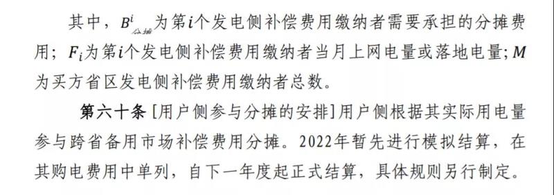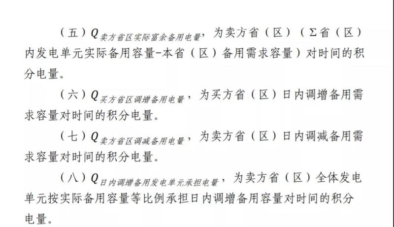 (一)天生橋、龍灘、烏東德、溪洛渡、瀾滄江上游五廠等,全廠備用容量按照送電比例計(jì)入各受電?。▍^(qū))備用資源參與跨省備用市場(chǎng)交易,根據(jù)實(shí)際成交容量和市場(chǎng)出清價(jià)格計(jì)算其備用收益。根據(jù)月度落地各受電?。▍^(qū))的電量參與市場(chǎng)費(fèi)用分?jǐn)偂?