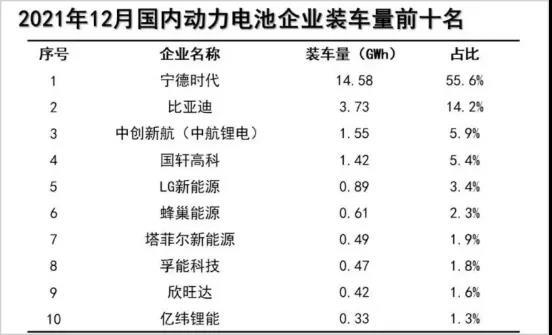 根據(jù)中國汽車動力電池產(chǎn)業(yè)創(chuàng)新聯(lián)盟的最新數(shù)據(jù),寧德時代12月在國內(nèi)的裝機量水平是中航鋰電和國軒高科的十倍左右,是蜂巢能源、孚能科技、欣旺達、億緯鋰能的幾十倍。