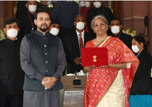 印度財政部部長Nirmala Sitharaman手持2021年預算文件夾