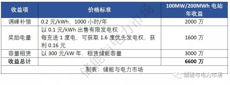 表:山東儲(chǔ)能示范項(xiàng)目收益