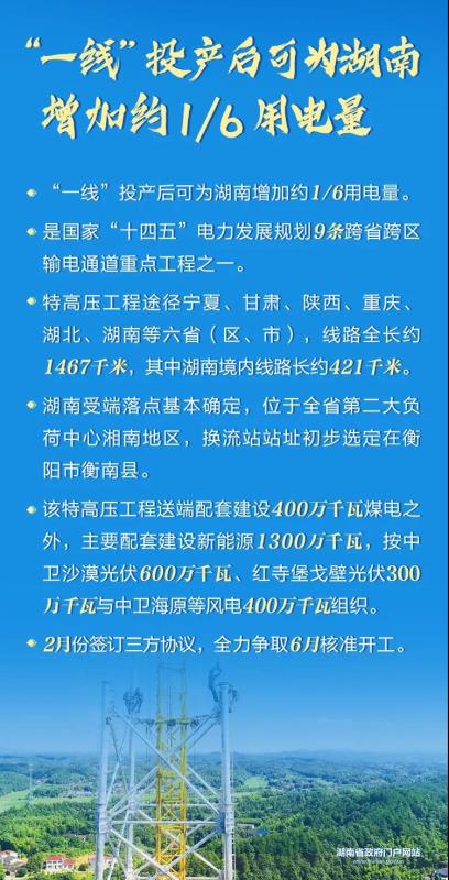 根據(jù)湖南省能源局介紹,該特高壓工程按年送電量400至440億千瓦時設(shè)計。2021年,湖南全社會用電量為2154.5億千瓦時。這意味著,該工程在“十四五”末投產(chǎn)后,可為湖南增加約1/6的用電量。