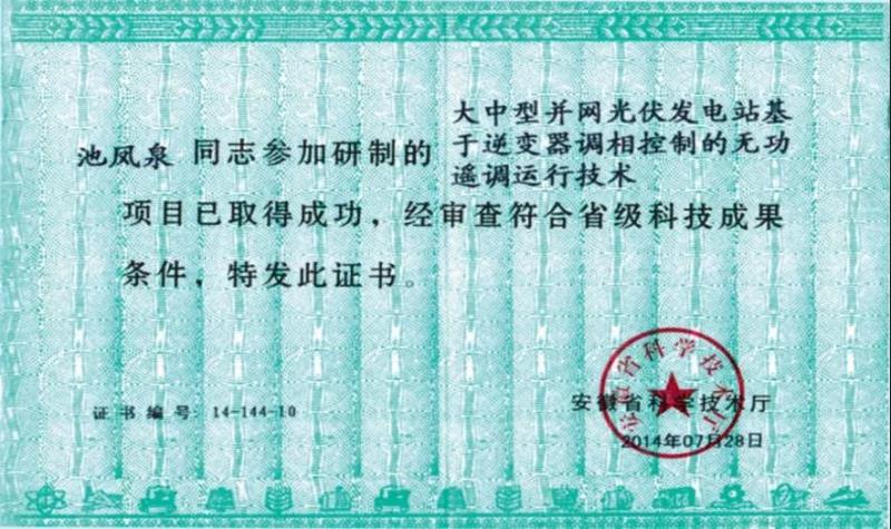 2014年,中匯電氣參與“大中型并網(wǎng)光伏發(fā)電站基于逆變器調(diào)相控制的無(wú)功遙調(diào)技術(shù)”科研項(xiàng)目,并榮獲“省級(jí)科研成果”獎(jiǎng)。結(jié)合應(yīng)用“逆變器無(wú)功群控群調(diào)技術(shù)”成功開(kāi)發(fā)RE-7000 AGC/AVC功率控制系統(tǒng)。