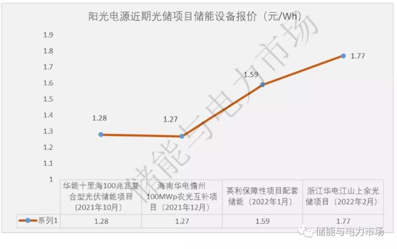 陽光電源1.77元/Wh的中標單價,相對于其2022年1月英利項目入圍報價1.59元/Wh,上浮了11.3%。而相對于該公司2021年底光伏儲能項目單價1.27元/Wh,此次報價更是上浮了39.4%。這一價格也達到了近期該公司投標價格的最高值。