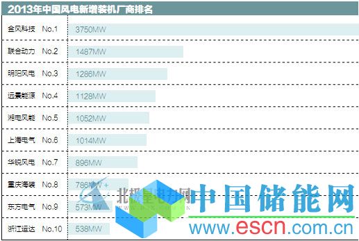 與2012 年的新增裝機(jī)量相比,2013年外資整機(jī)制造商沒(méi)有一家進(jìn)入前1 0名,金風(fēng)科技獨(dú)占鰲頭,華銳風(fēng)電、聯(lián)合動(dòng)力新增裝機(jī)量大量下滑,遠(yuǎn)景能源快速崛起。2013年,新增裝機(jī)排名前5的風(fēng)電機(jī)組制造商所占市場(chǎng)份額由2012年的60%進(jìn)一步下降至54.1%,同比下降了6 個(gè)百分點(diǎn)。