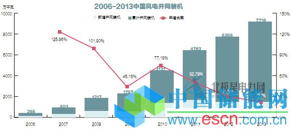 中國(guó)儲(chǔ)能網(wǎng)訊:2011年,我國(guó)風(fēng)電新增裝機(jī)1763萬(wàn)千瓦,與2010年新增1892萬(wàn)千瓦相比呈下降趨勢(shì)。這意味著,風(fēng)電自2005年以來(lái)連續(xù)5年持續(xù)升溫的趨勢(shì)開(kāi)始出現(xiàn)轉(zhuǎn)折。不過(guò),經(jīng)過(guò) 2012 年的低谷后,2013 年中國(guó)風(fēng)電新增裝機(jī)容量1610萬(wàn)千瓦,較2012年的1296 萬(wàn)千瓦大幅提高24%,中國(guó)風(fēng)電開(kāi)始走向復(fù)蘇。