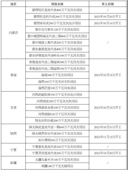 表1 第一批大型風(fēng)電光伏基地開工情況匯總