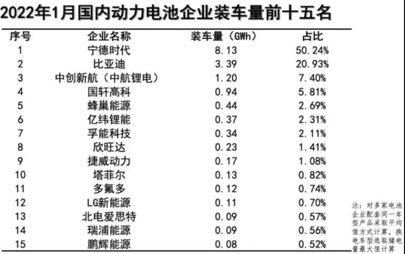 總體看來,寧德時代、比亞迪、中創(chuàng)新航、國軒高科的名次和2021年12月的排名沒有變化,充分說明頭部企業(yè)的地位穩(wěn)固。
