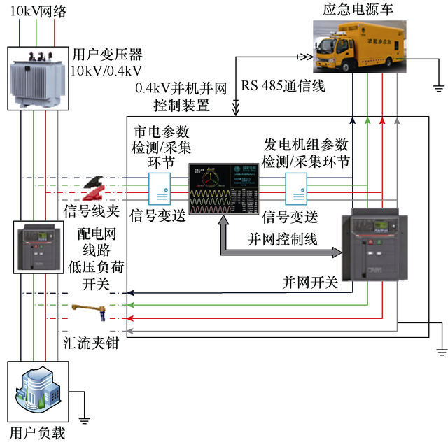 與傳統(tǒng)供電保障模式相比,配備0.4kV移動式并機并網(wǎng)裝置的應(yīng)急電源車主動性更高,實用性更強,使實際工作方式產(chǎn)生了新的變化。