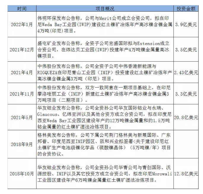在此情況之下,頭部三元前驅(qū)體企業(yè)紛紛布局海外鎳資源,通過簽署供貨長單或投資建廠的方式,提前鎖定印尼鎳金屬資源量與價格模式,打通并進一步優(yōu)化原材料供給渠道,從而降低其生產(chǎn)成本。